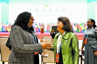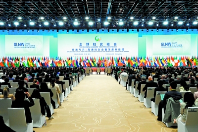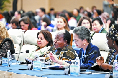 ▲全球妇女峰会凝聚与会各国加速妇女全面发展新进程共识。