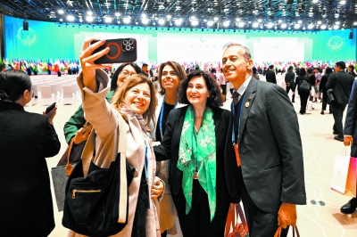 ▲与会嘉宾在全球妇女峰会开幕式现场拍照留念。
