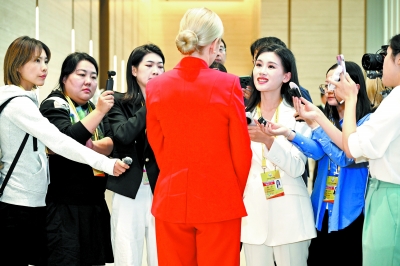 ▲记者正在采访与会嘉宾。