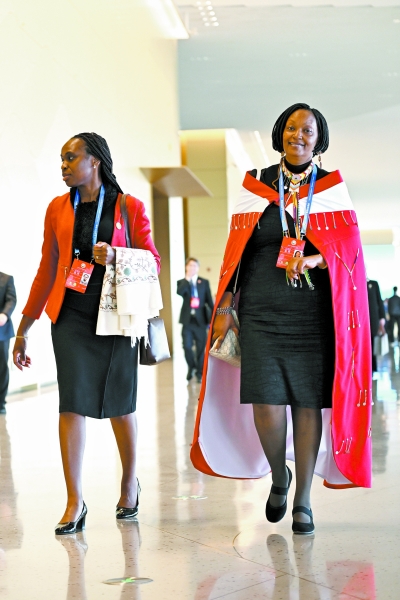 ▲柬埔寨国会代表团步入会场。中国妇女报全媒体记者 熊维西/摄